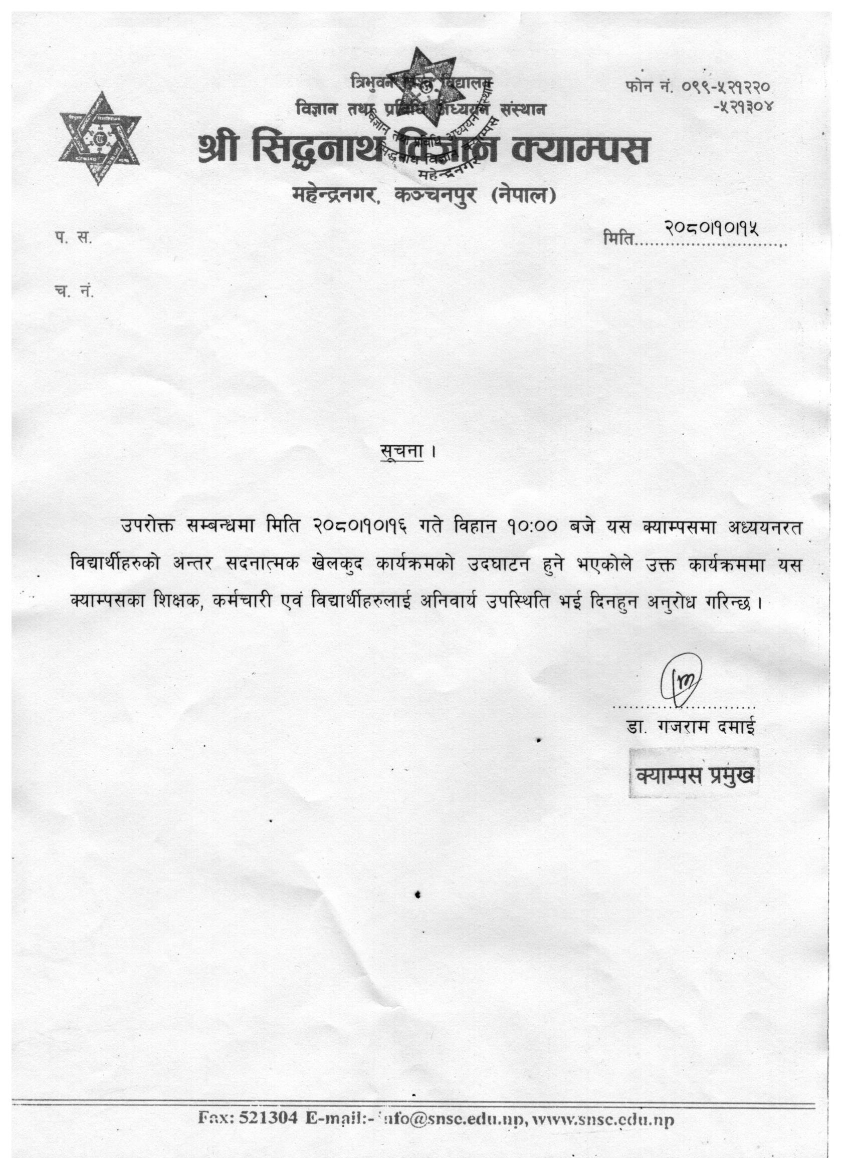 खेलकुद कार्यक्रम उदघाटन सम्बन्धि सूचना